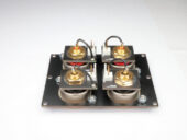 A 2 channel 12dB per octave Linkwitz Riley cross-over board to drive separate amplifiers for woofers and tweeters. The frequency can easily be set or changed with a small and convenient plugin board. A nice terminal bracket is available that holds the cinch terminals for the outputs.
