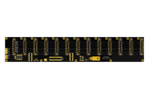 Backplane board with 13 silver plated slots for modular pre-amplifier system.